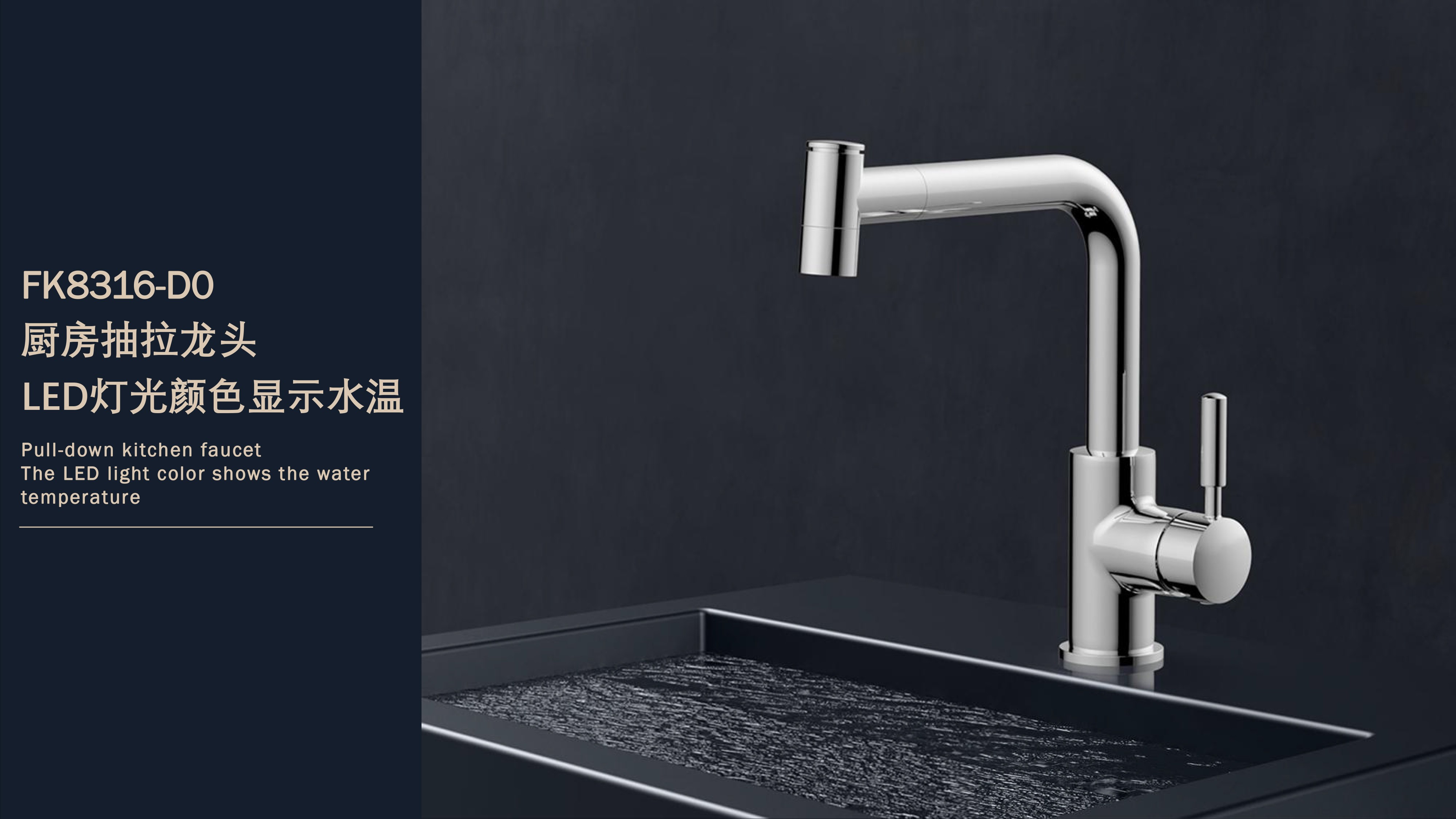 FK8316-D0 LED燈光顏色顯示水溫廚房抽拉龍頭