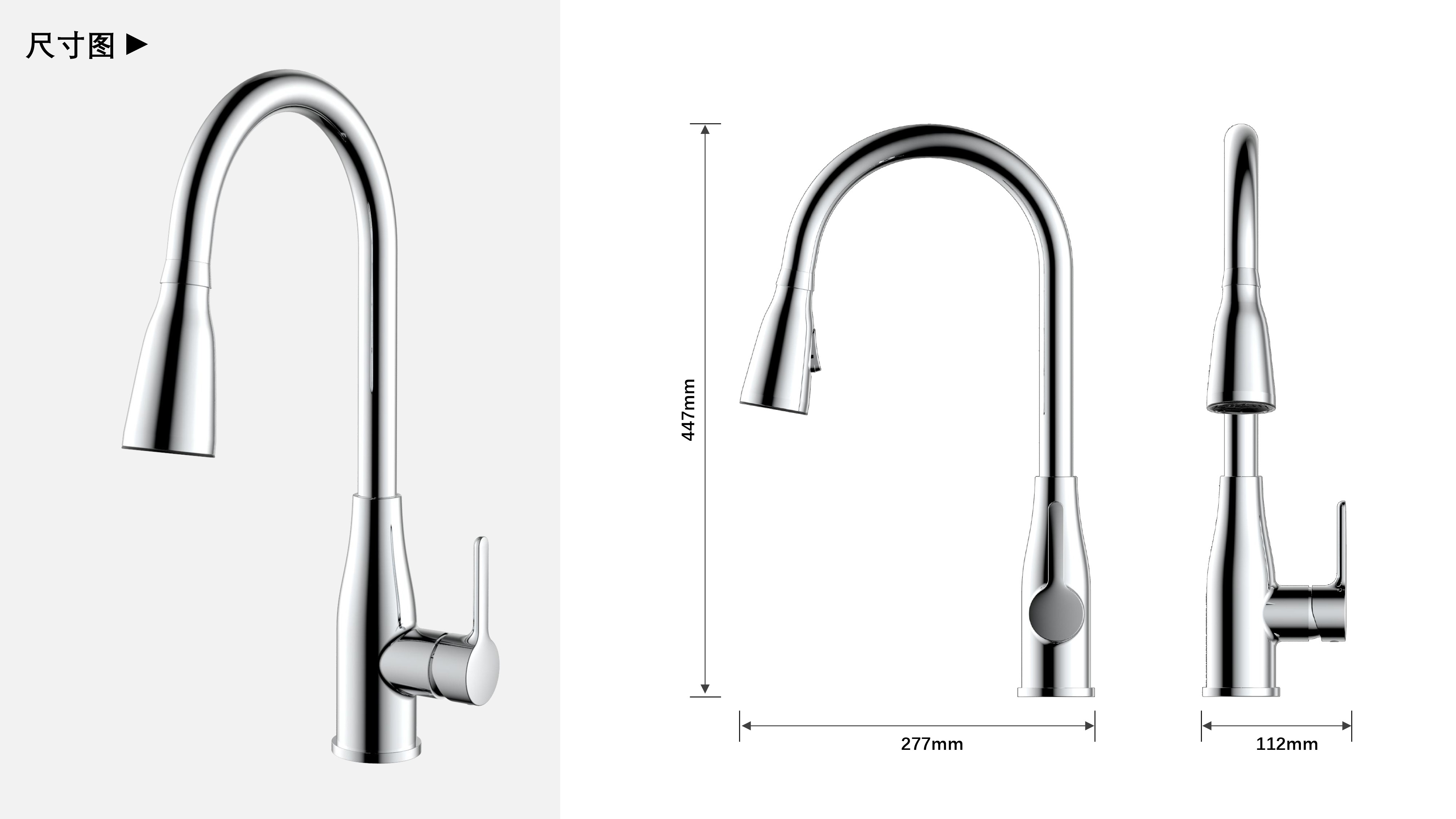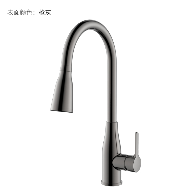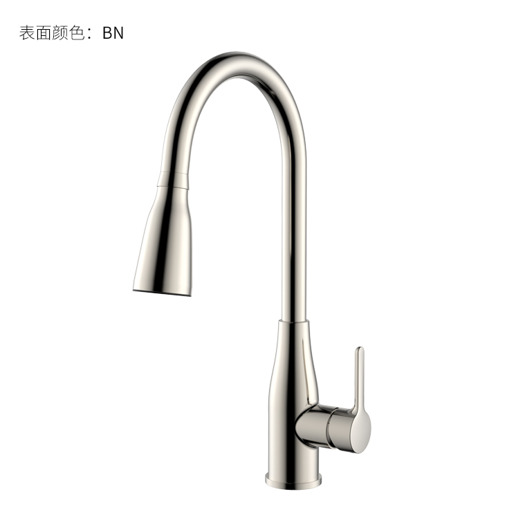 LED廚房抽拉龍頭;智能溫感芯片技術,LED三種燈光顏色顯示溫水-涼水顯示藍色、溫水顯示綠色、熱水顯示紅色;抽拉頭多角度抽拉使用